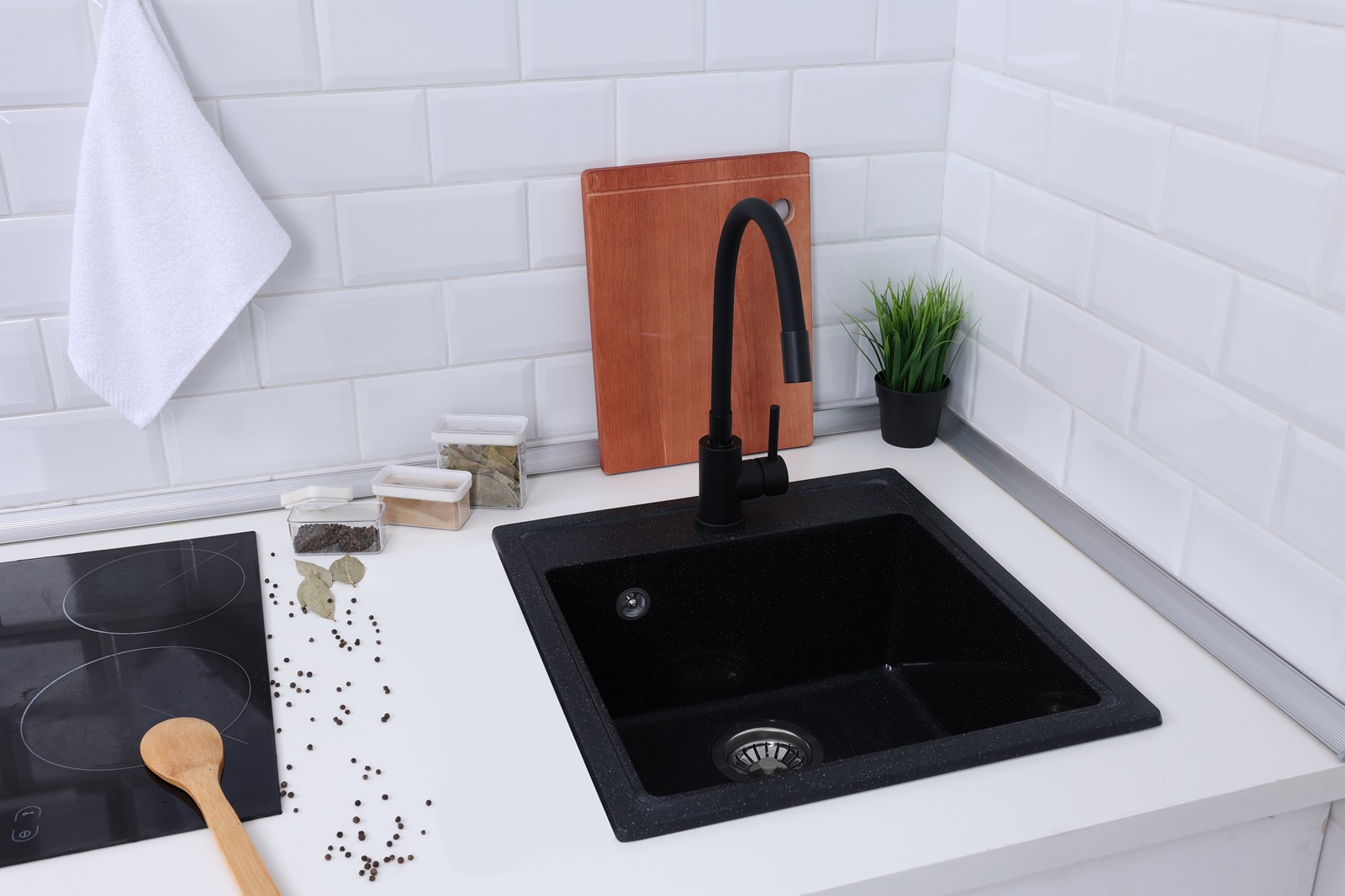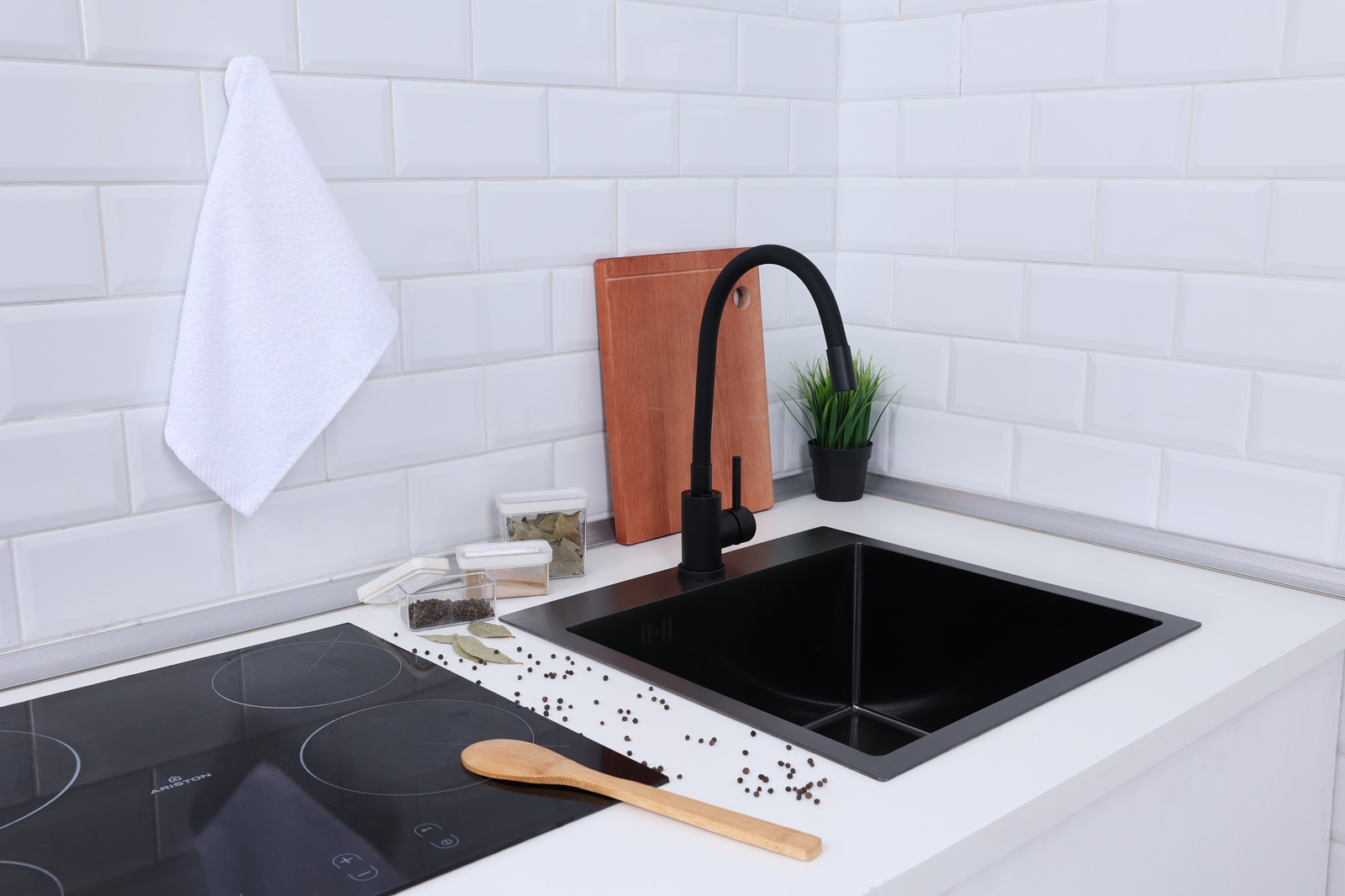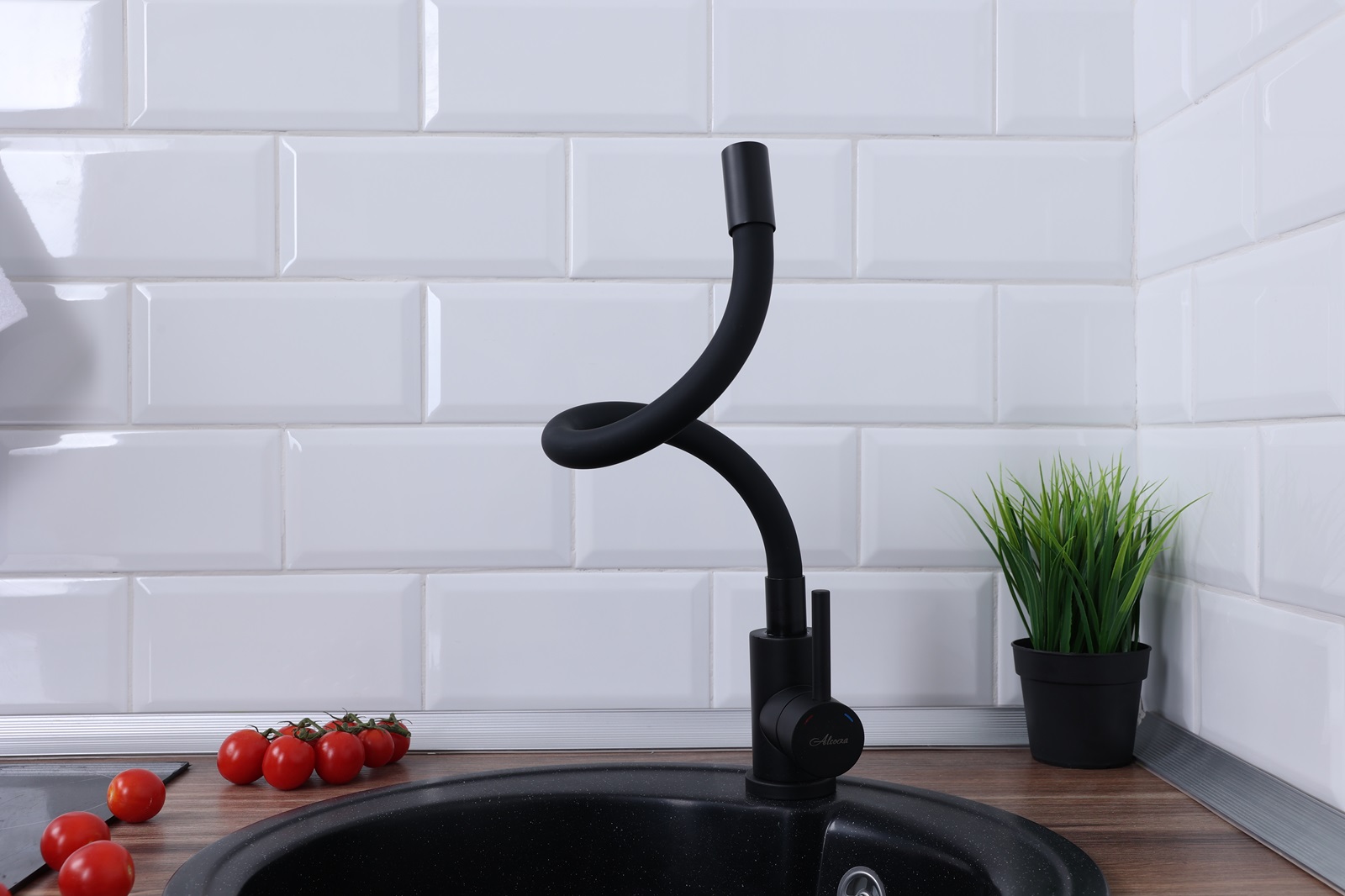 Полностью выполненный из высококачественной нержавеющей стали и покрытый матовым черным PVD-напылением, Langfoss сочетает в себе прочность, современный дизайн и безупречную эстетику. Он гармонично дополняет любую кухню — от строгого минимализма до уютного скандинавского интерьера — и идеально сочетается с мойками Alcora.