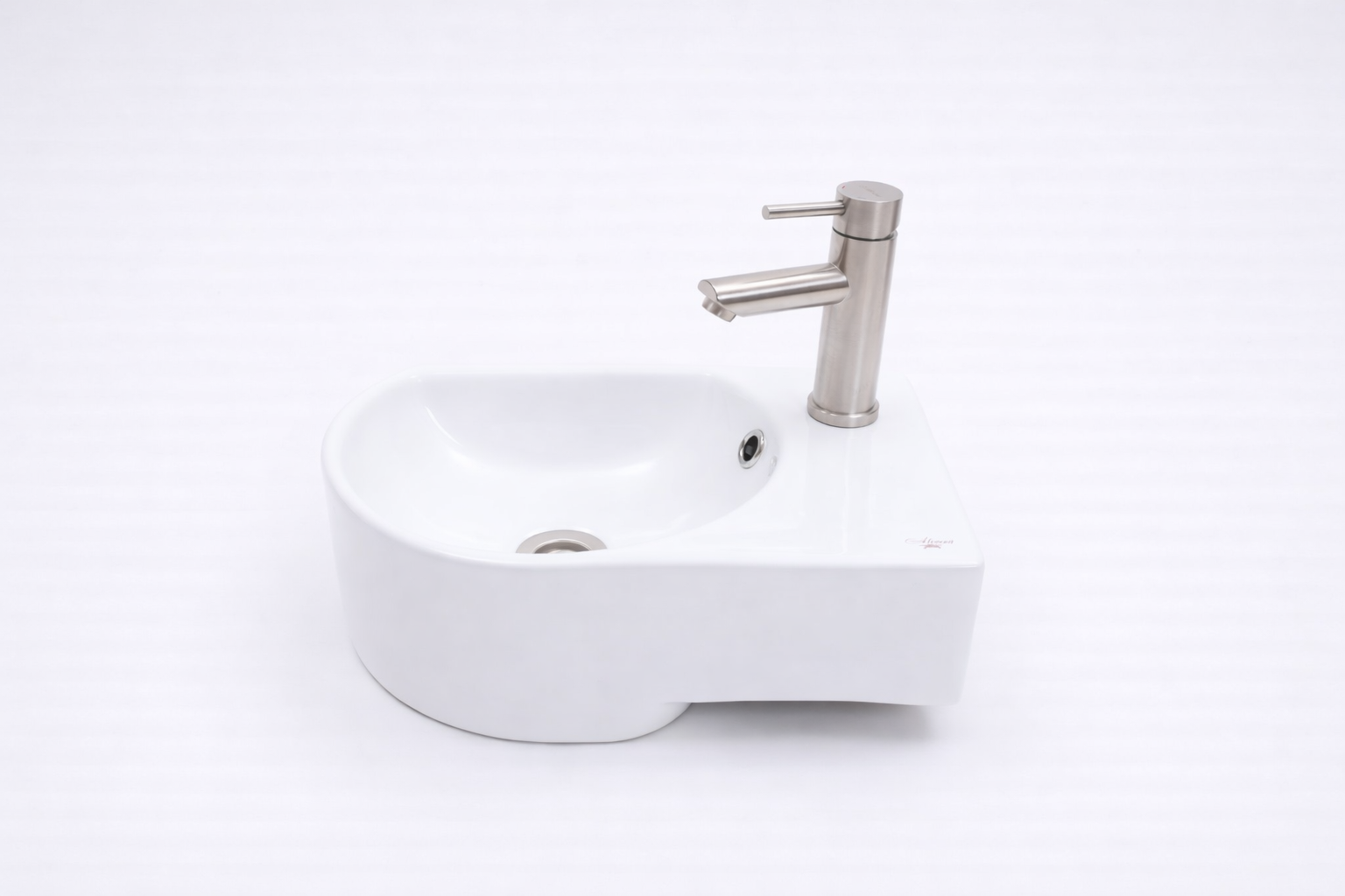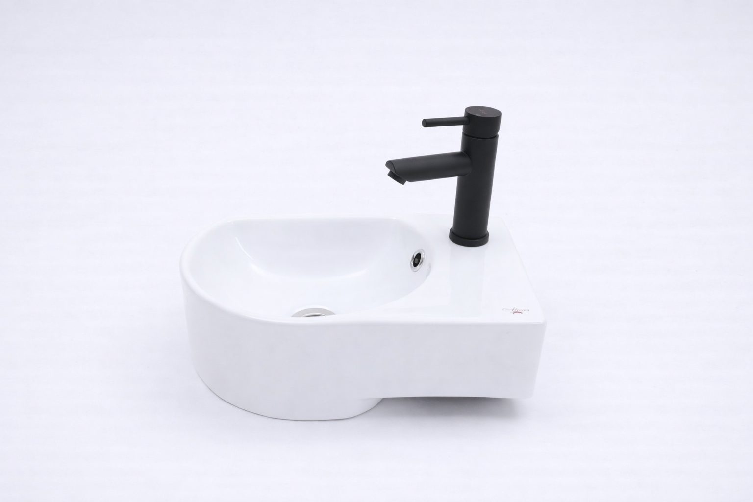 Тщательно выверенная треугольная геометрия и скульптурная пластика формы позволяют модели органично вписаться в левый угол пространства, превращая умывальник в выразительный элемент интерьерной композиции. Мягко закруглённая, глубоко продуманная чаша обеспечивает исключительный комфорт использования, а её идеально ровная поверхность облегчает уход и сохраняет безупречный внешний вид на долгие годы.