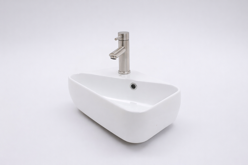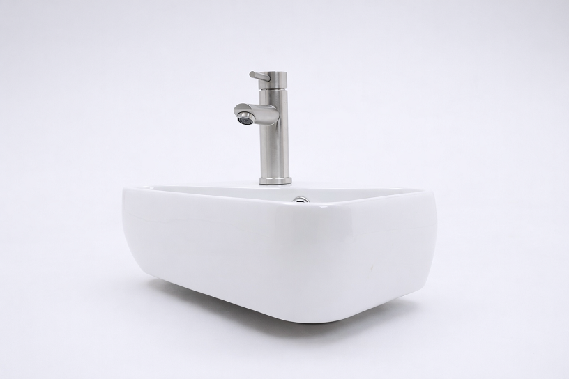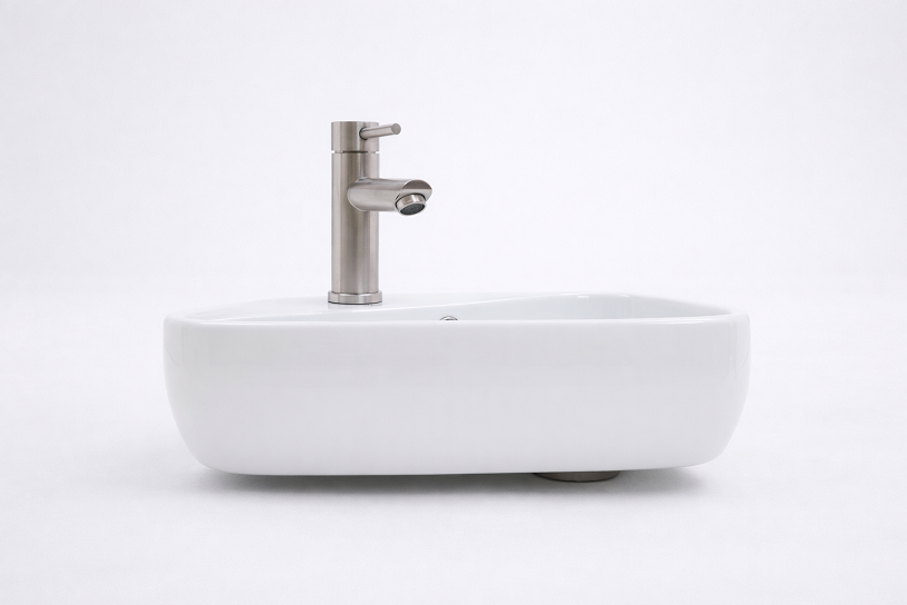 Точно выверенное центральное отверстие под смеситель подчёркивает чистоту композиции, а встроенный перелив деликатно обеспечивает дополнительную безопасность.